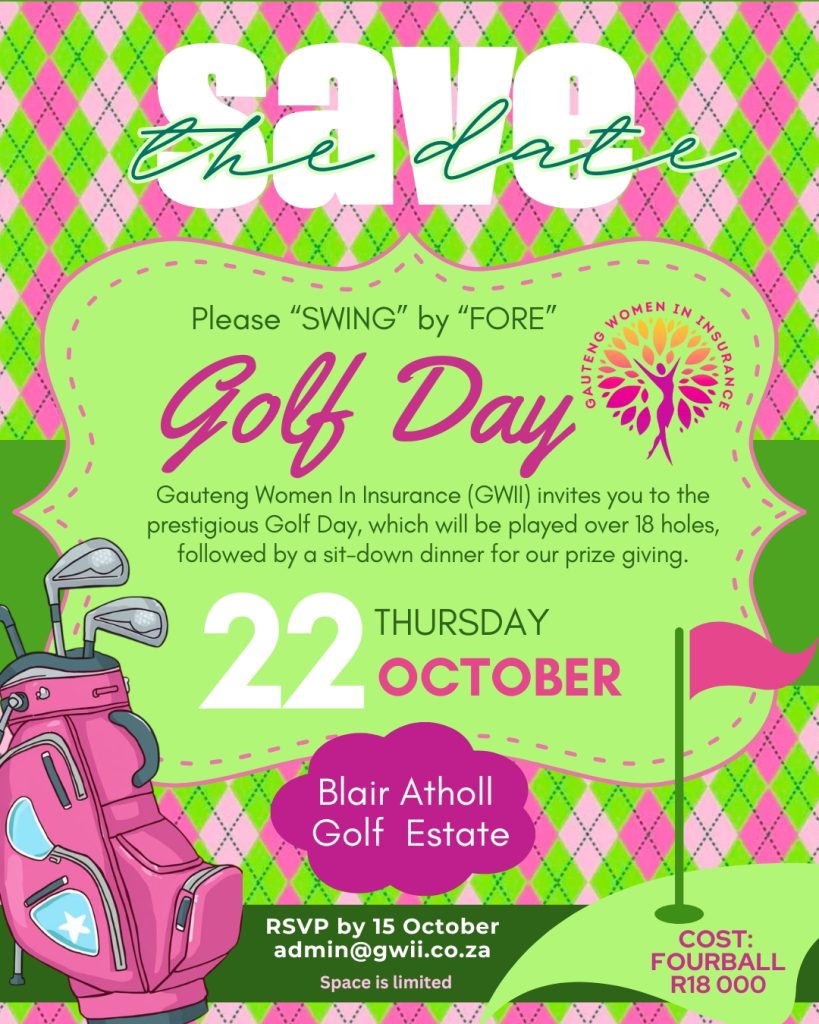 Save the Date! Gauteng Women In Insurance (GWII) invites you to join us for an unforgettable Golf Day at the stunning Blair Atholl Golf Estate! Date: Thursday, 22nd October 18 Holes of Golf followed by a fabulous sit-down dinner & prize-giving RSVP by 15th October at: admin@gwii.co.za Cost: R18,000 for a 4-ball Don’t miss out Read More